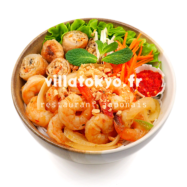(Nêm au poulet, salade, vermicelle, cacahuète)